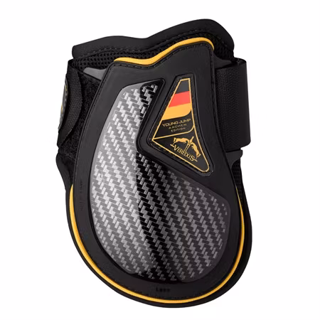 Young Jump Absolute Carbon Gel bakbensskyddet är särskilt godkända för unghästar av Internationella Förbundet, men kan användas på hästar i alla åldrar. Förstärkningen av skyddet är tillverkat i Carbon och Nitrexgel, och är bredare för att ge maximalt skydd av kotan.