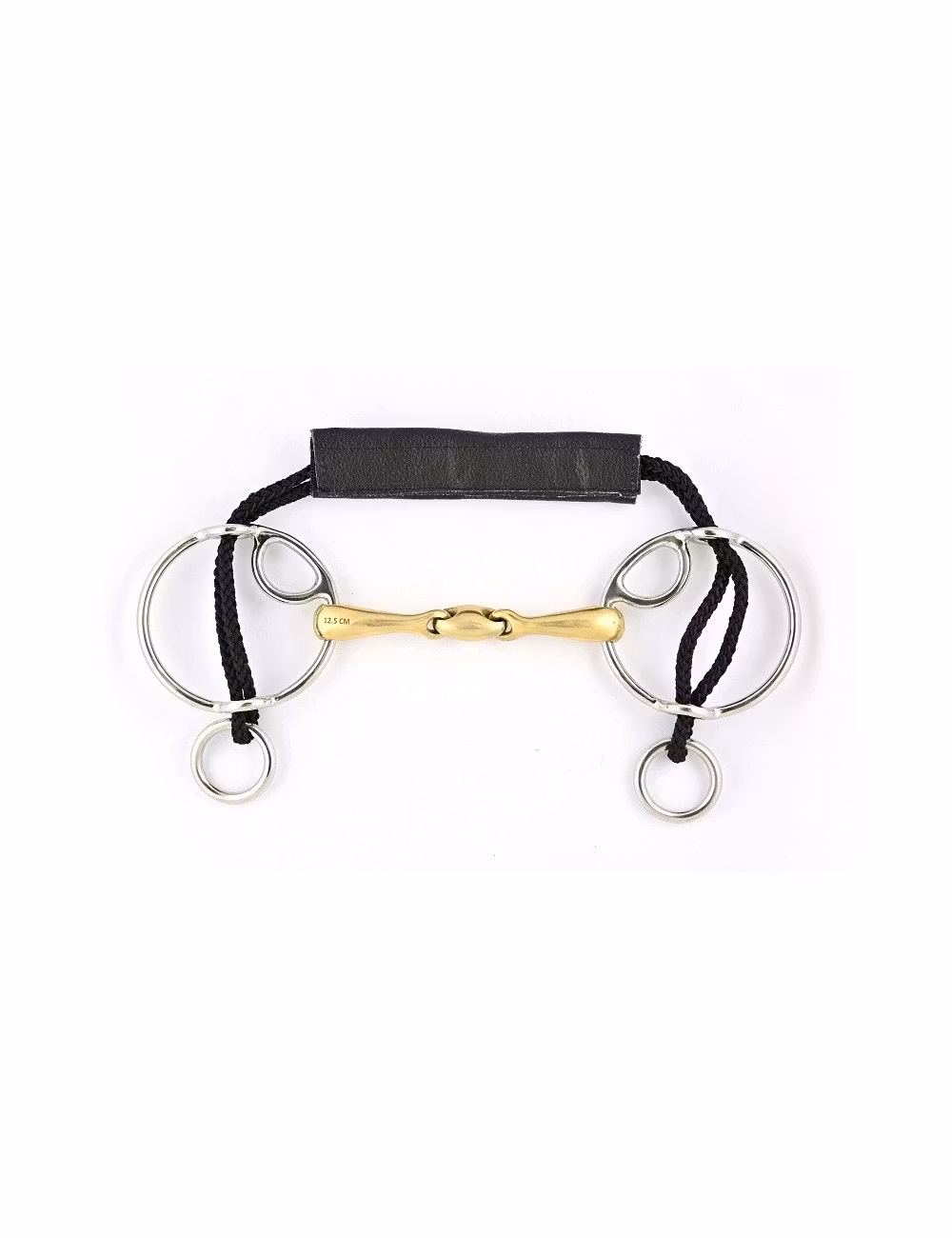 Tips: the passes prevent the bit from tipping over and the cheek pieces are better fixed on it. The bit can be used with a pair of reins directly fixed on the gag cheek pieces, with bit loops or with two pairs of reins.
