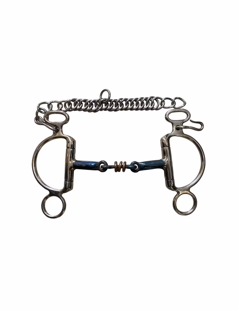 Effect: This new Jump'in bits, think and develop by Jump'In Team. It is a mix with Pelham and 3 rings. With it you have an action more direct as a 3 rings, because the upper ring is different, and more strong with chain.