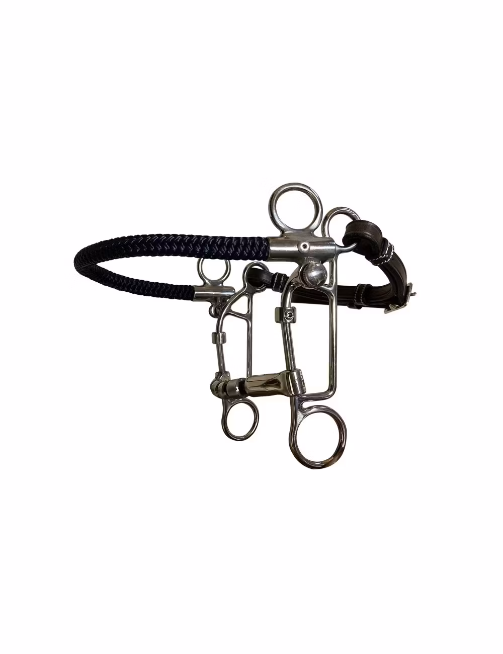 Effect: the Combination bit is an hybrid between the Hackamore and the standard bit. It splits the pressure points between the horse's mouth, the mandibules and the nose. The Combination bit can be a good option to split the pressure points and have as much control as possible while compromising at the maximum.