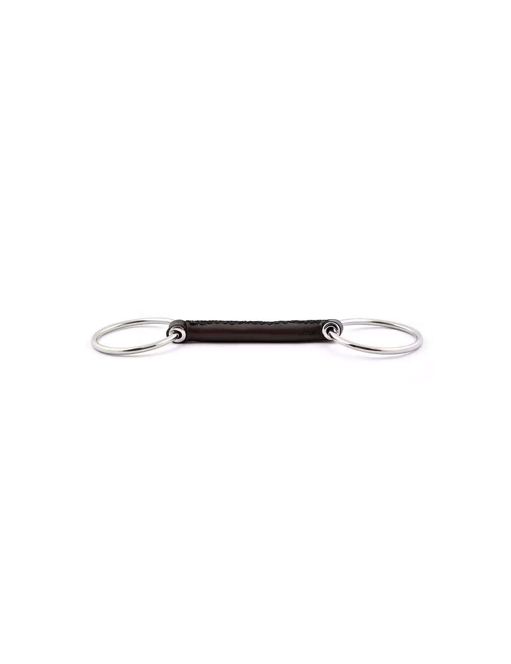 Tips: the leather cannon gives the purest contact possible because it is equivalent to a skin to skin contact. The round leather cannon is very soft but will give more action than a flat leather one. Leather will soften a lot when in the horse's mouth and will create a total confidence between the rider's hand, the bit and the horse.