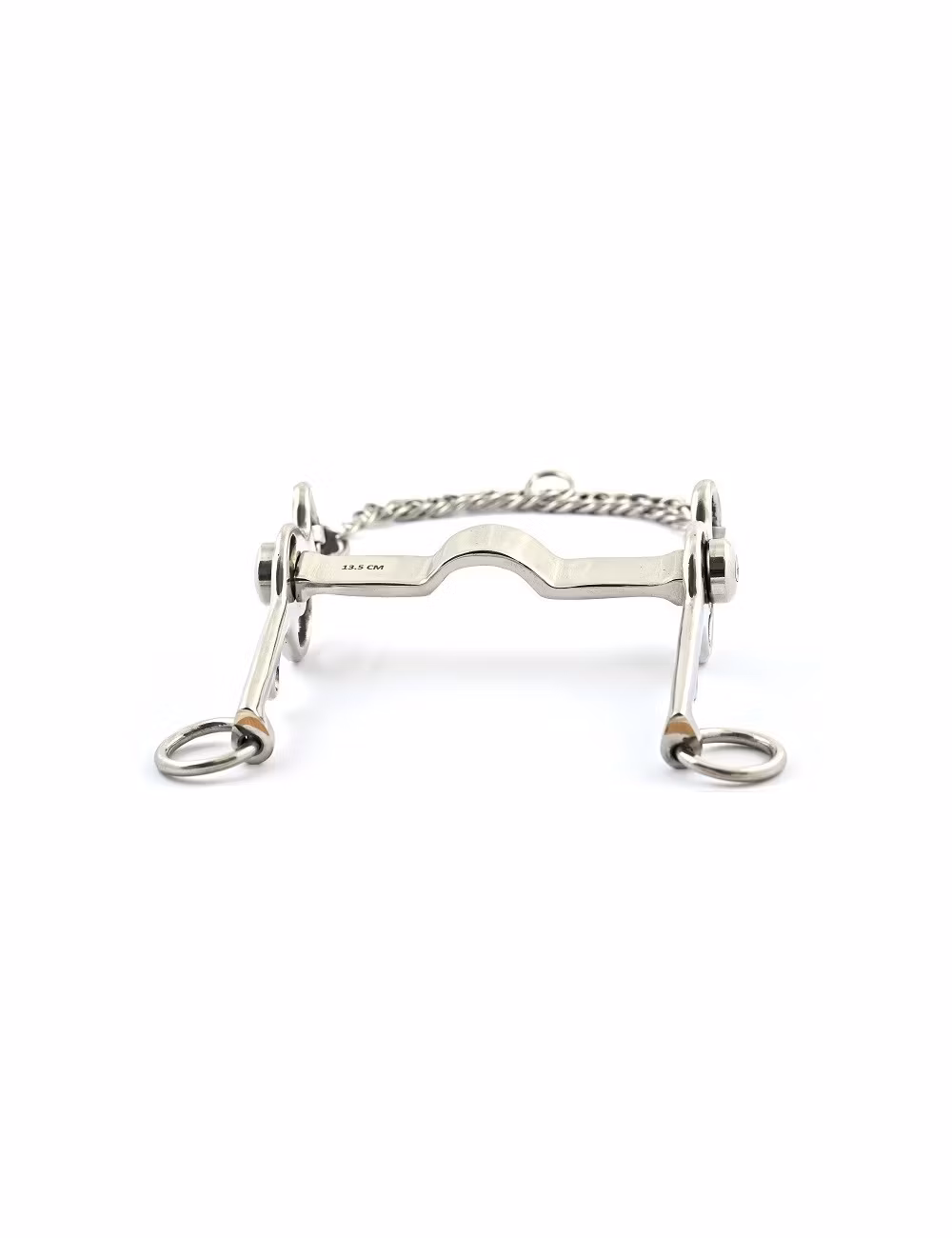 Tips: the flat cannon is atypical but is very comfortable for certain horse as it articulates around an axis (90°) and offers a large contact surface to the horse. The thinness of the cannon makes it stronger than the 0029P. This Pelham bit can be used directly with two reins or with four reins. Therefore, the curb chain action can be softened by using other curb chain types as leather or nylon ones.