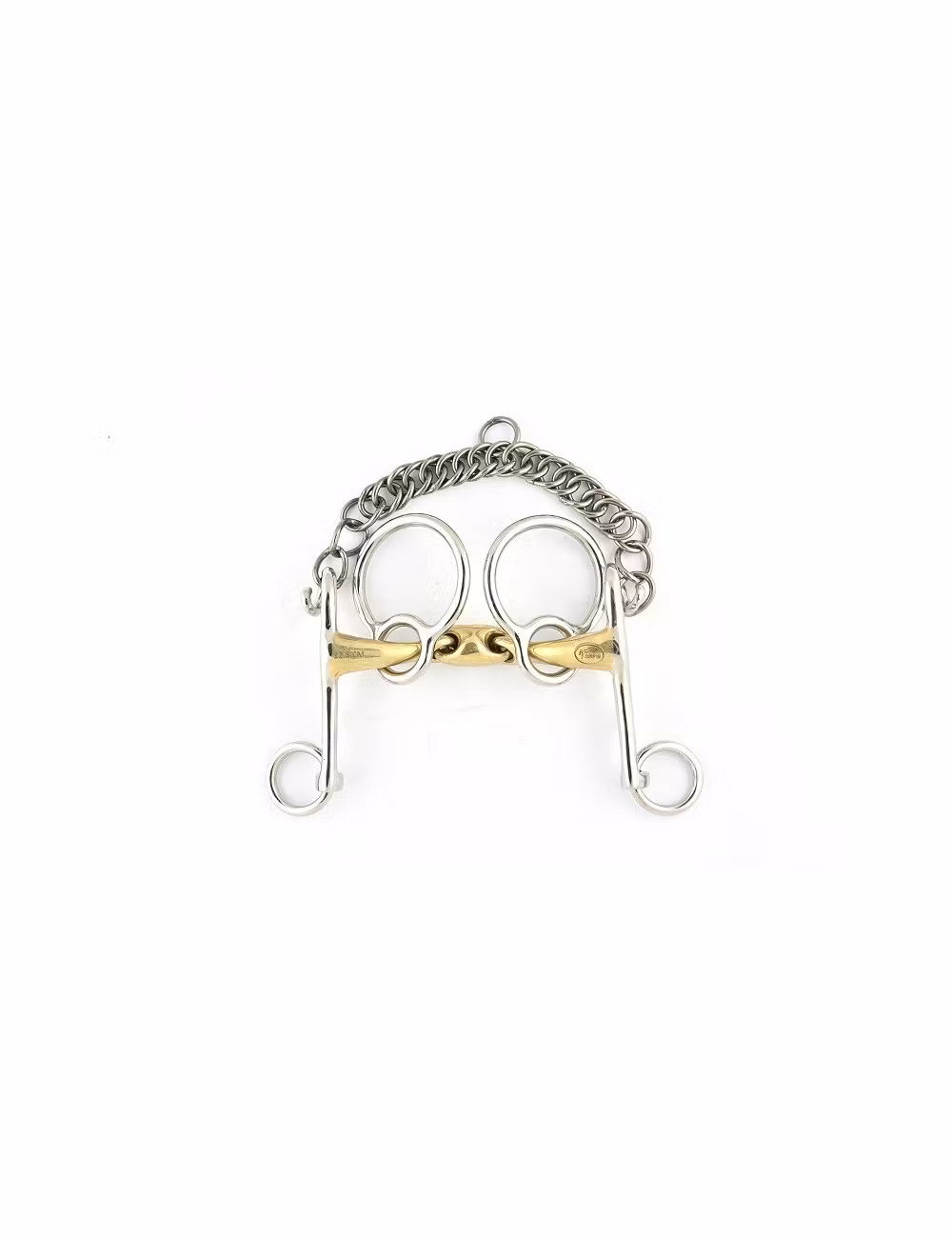 Tips: this bit can be used directly with two reins, with bit loops or with four reins. The French mouth characteristic makes this bit softer.