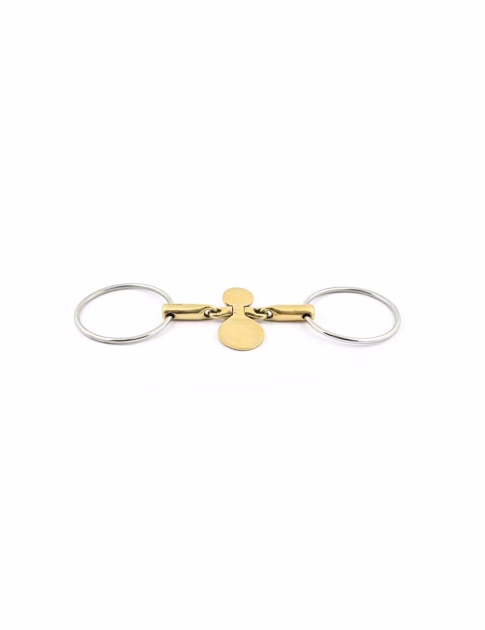 Effect: loose ring bits are the simplest in terms of action from the rider but also in the horse's mouth. The large rings give a slight lever action and most of all, a better direction. The 360° pivoting large double disk lays flat on the tongue at all times so it can complete its role by preventing the tongue from ever going above the bit.