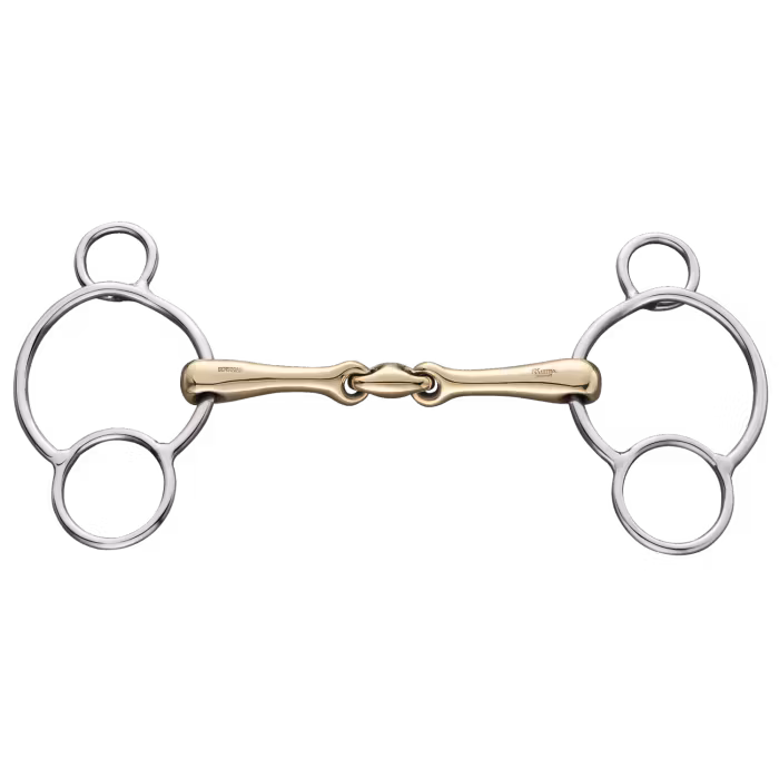 When the reins are taken up, the middle link – also known as the “lozenge” because of its striking shape – gently rolls over the central part of the horse’s tongue, stimulating its sense of touch. The connecting rings to the middle piece roll softly over the tongue without exerting pressure.