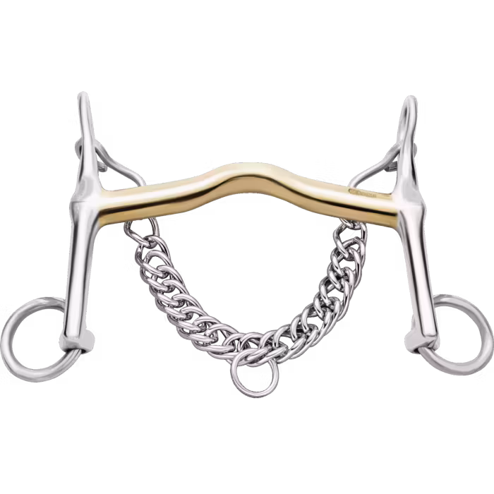The Weymouth is attached a little bit lower where the horse's head gets thinner. Therefore the Weymouth should be 1/2 to 1 cm smaller than the bradoon. It is important that the cheeks of the Weymouth fit closely to both sides of the horse's mouth.