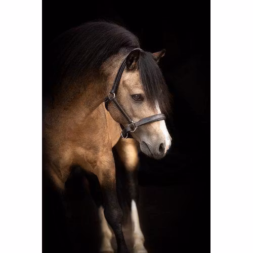 Välarbetad och underbart mjuk lädergrimma i infettat buffelläder med silverspännen. Fodrad ställbar nacke och fodrad reglerbar nosrem.
