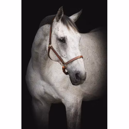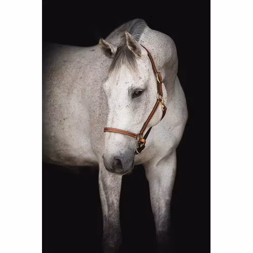 Grimma modell Track i ett smidigt amerikanskt läder. Mässingsbeslag och off-white stickningar. Storlek: Shetland, ponny, cob, full, x-full