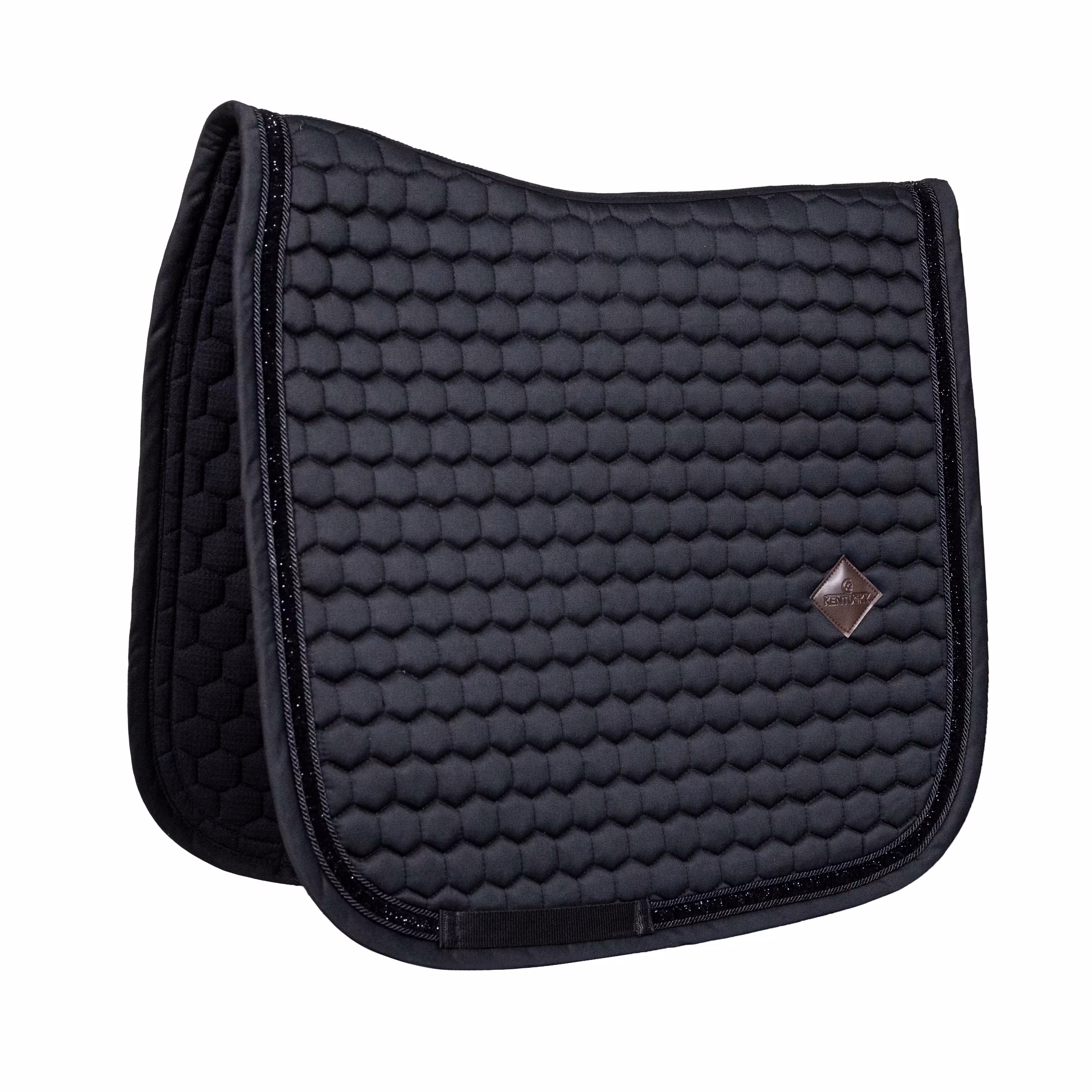 Crafted from a honeycomb pattern cotton-polyester blend fabric which Is quick-drying, this saddle pad ensures your horse stays comfortable even during intense training sessions. The inner padding is breathable, providing effective cushioning between the saddle and your horse’s back. The stitched Kentucky logo, made from premium vegan leather, showcases Kentucky quality from afar.