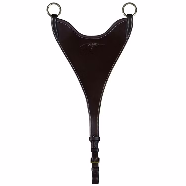 Justerbar kort BIB-martingal tillverkad i fint spanskt läder med mässingsspännen och vit mönstersöm. Fästs enkelt i halsrem eller brösta.