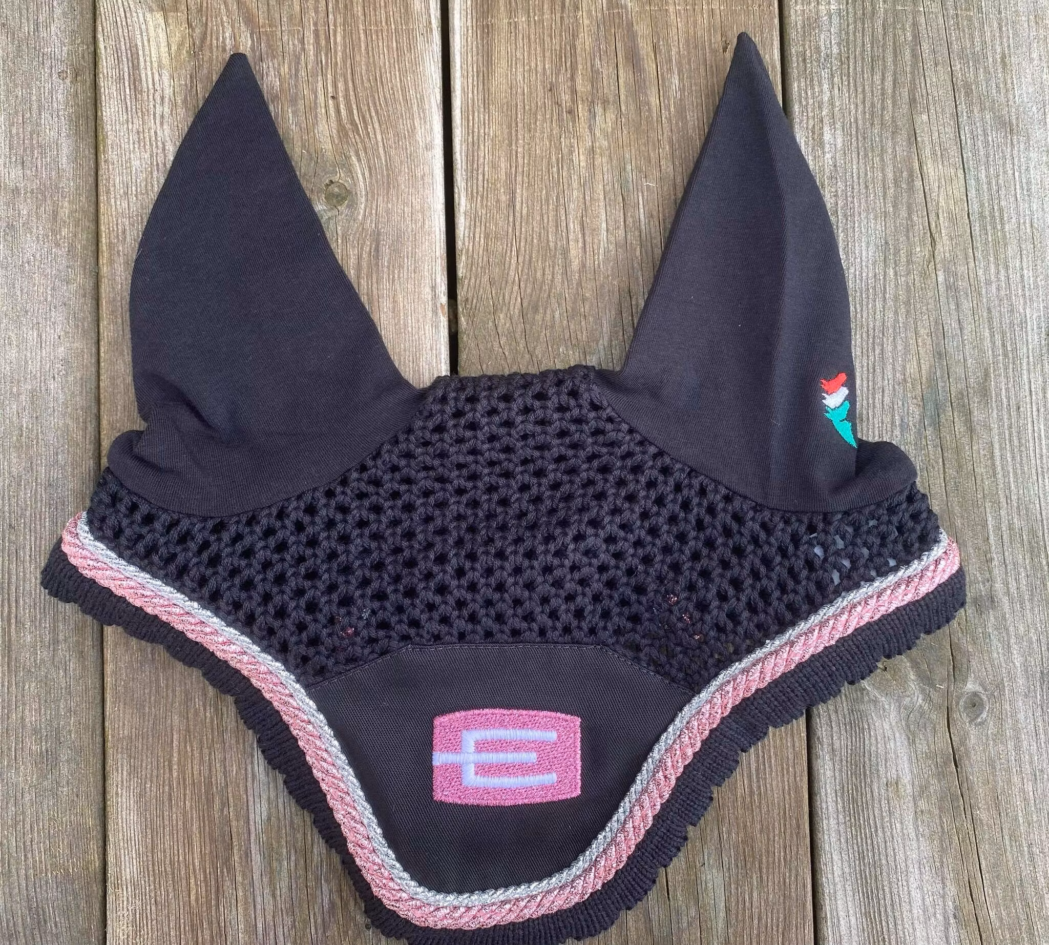 Denna designen finns i ponny med matchande huva i modell kim storlek ponny Bas -svart Design- Rosa glitter elogga rosa glitter passpoal silver passpoal Hoppschabrak med den populära E-loggan på vänster sida. Loggan går att få i flera olika färger! Självklart kan man välja till passpoaler, kristaller och kantband, precis som på de vanliga Equiline-schabraken.