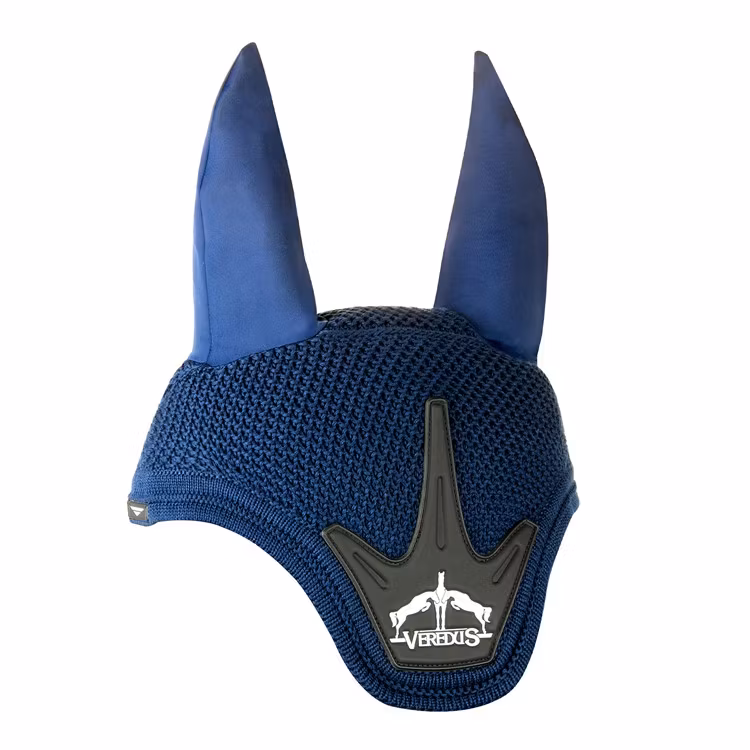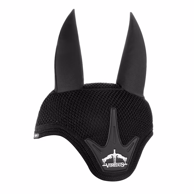 Den förstärkta delen med Veredus-loggan håller flughuvan på plats och gör så att den inte fladdrar, vilket kan störa vissa hästar.
