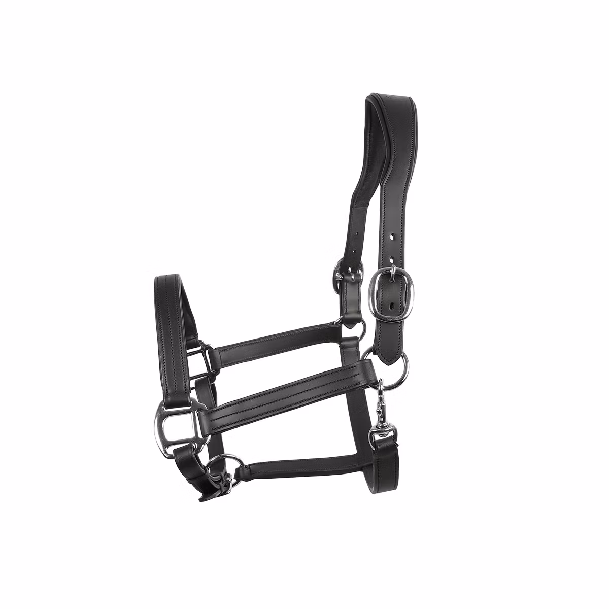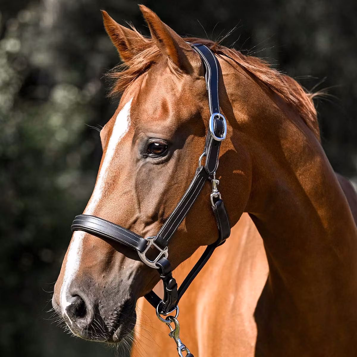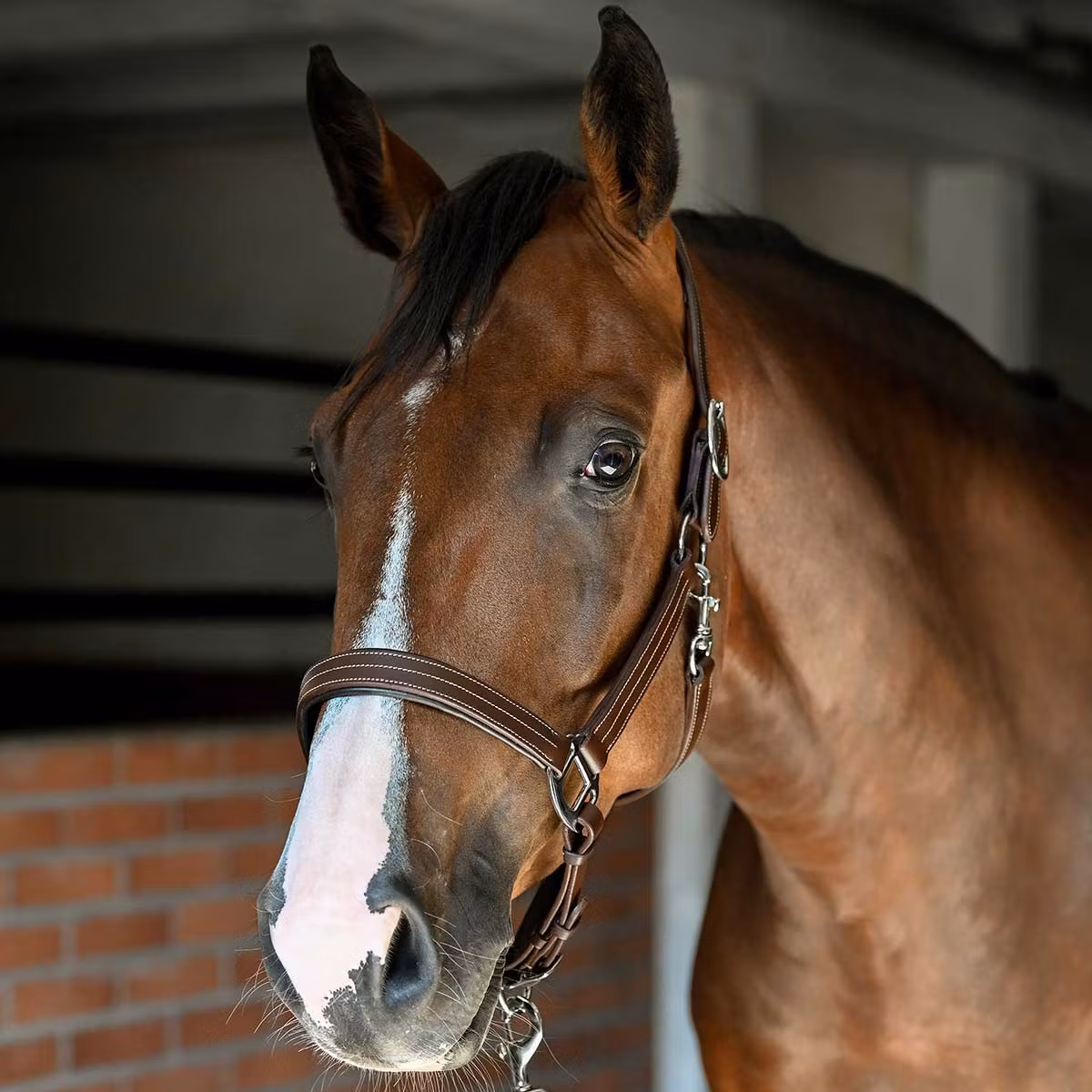 Lädergrimma från Signature by Antarès som kombinerar elegans med funktionalitet. Det mjuka buffellädret och fodringen i kalvskinn ger en behaglig passform, medan snabbspännet vid käkremmen gör grimman enkel att hantera.