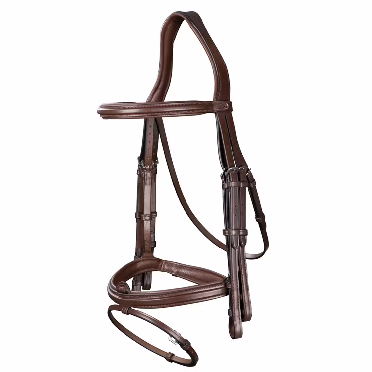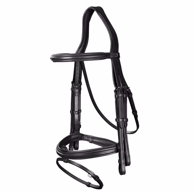 Kandar anpassat för hoppning med kombinerad nosgrimma, tillverkat i spanskt läder. Nackstycket är S-format för att att få bort trycket från öronen. Pannbandet och nosgrimman är något upphöjt vilket ger en mycket exklusiv look. Vita sömmar och silver spännen. Den nedre nosremmen är avtagbar vilket ger fler valmöjligheter. Inåtvända spännen.
