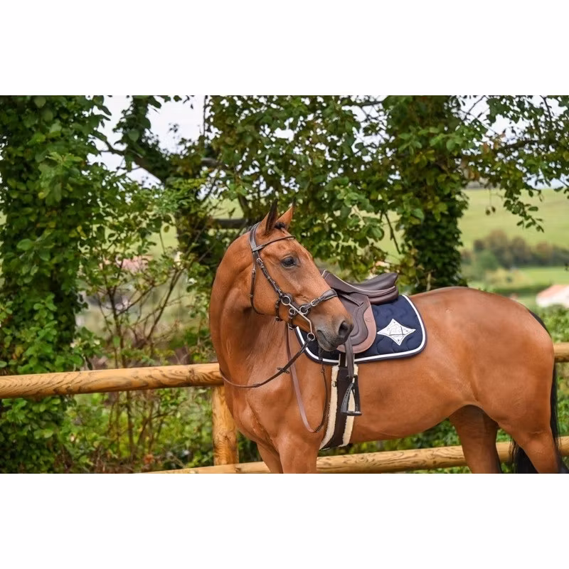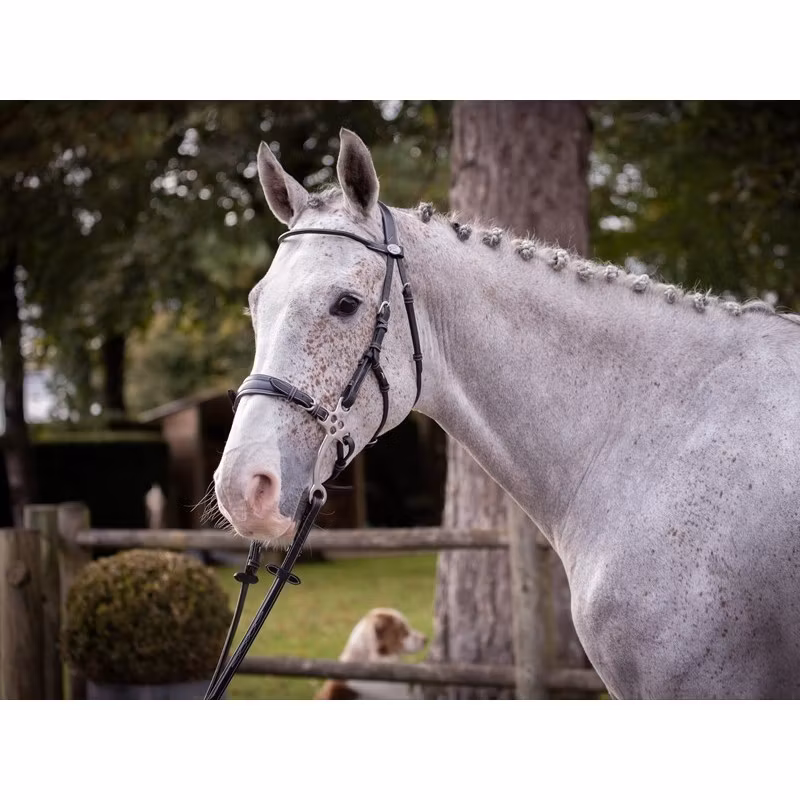 Specially created with adapted cheek pieces, the Hackamore bridle gives an alternative to traditional bridles with a bit. The noseband is directly attached to the bit so the bridle is lightened. The brow band is made with a round leather and the headpiece is anatomical. The buckles are stainless steel and the reins are made of a flexible rubber.