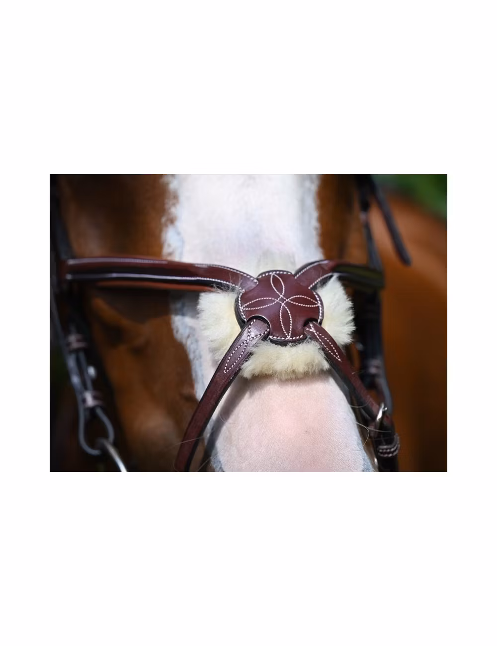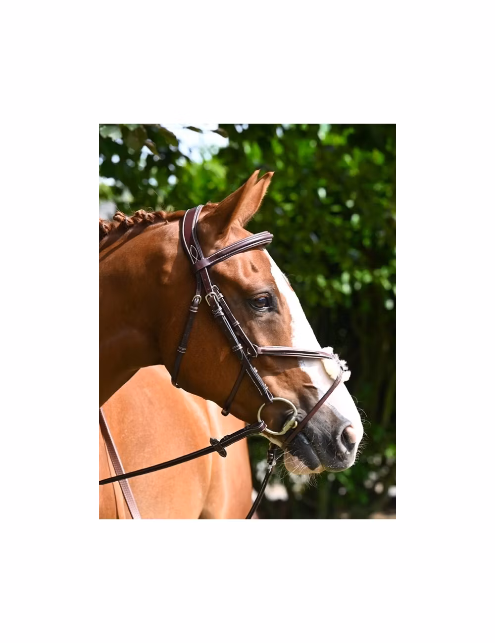 The brow band and the noseband are topped by a square leather with a white topstitch. The bridle is made of a a high-quality English full-grain leather from SEGWICK. The buckles are stainless steel and the finishes are particularly neat. As every other bridles from the Week Collection, the Tuesday bridle has an anatomic headpiece (it is larger to spread out the pressure on the cervical), a reinforced noseband for greater comfort and the famous crossed keepers that are the mark of the true Jump'In signature look.