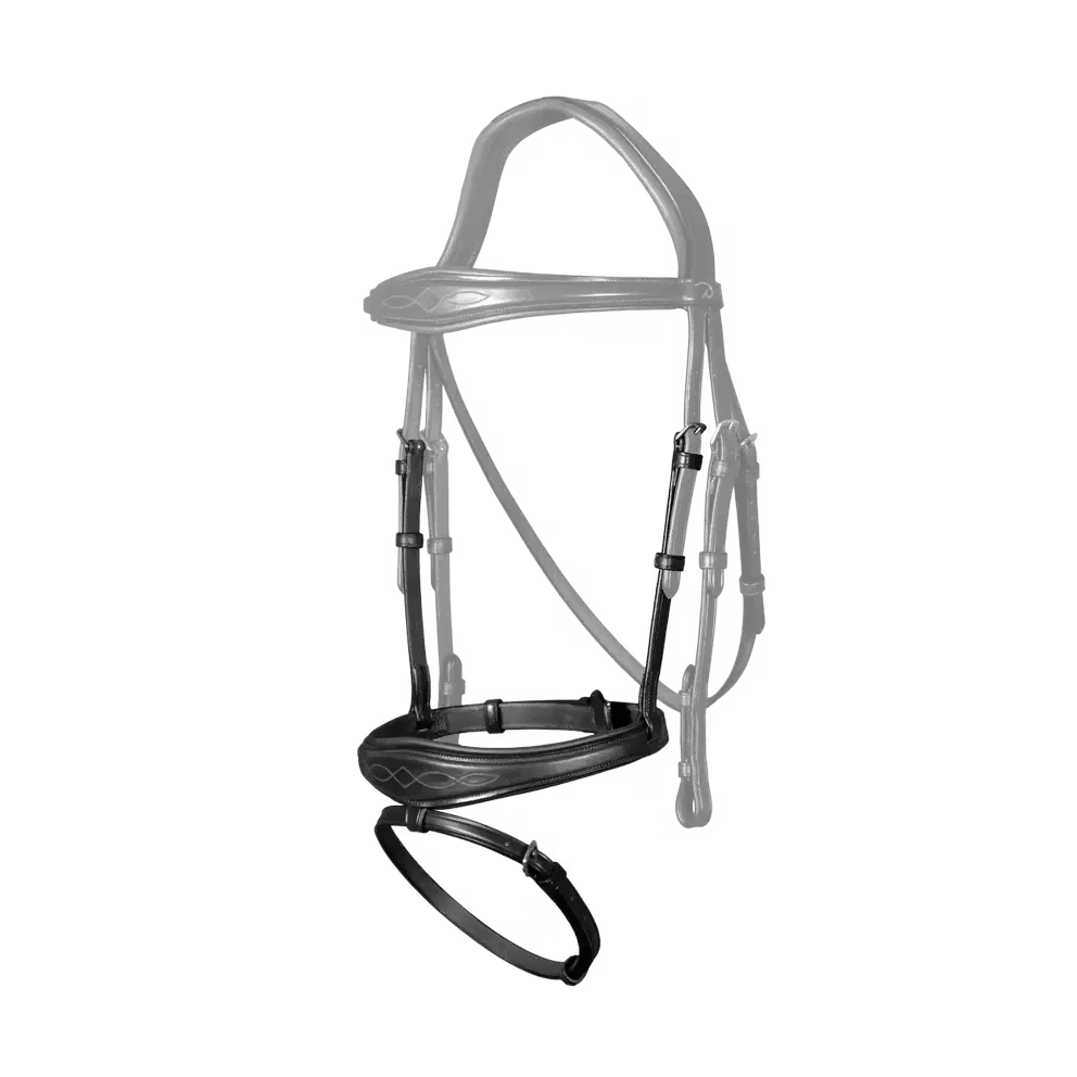 Pannband och nosgrimma breddade i mitten, lätt upphöjda, med dekorativa stickningar 1/2” (13 mm) avtagbar blixtrem Kompatibel med huvudstycken från New English Collection