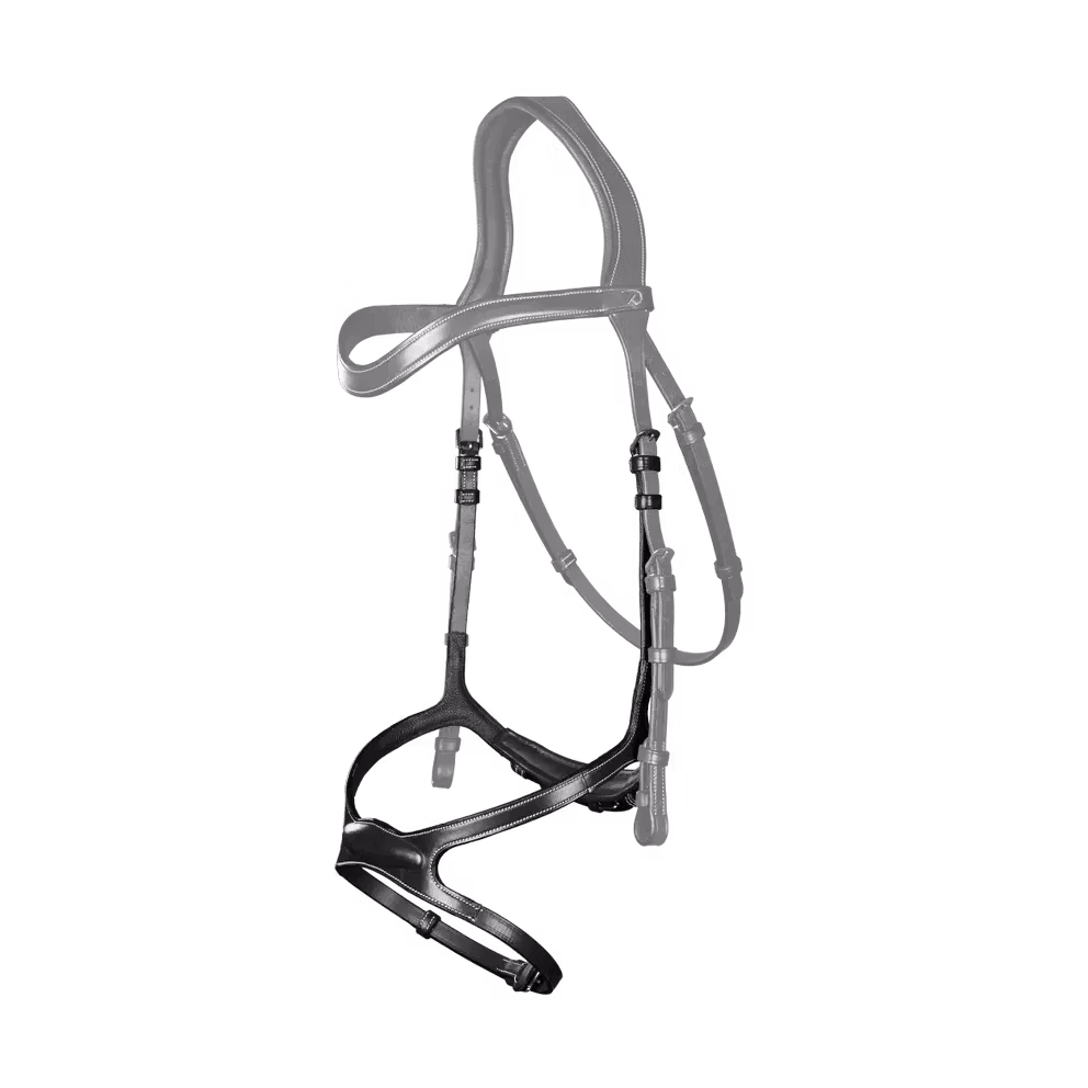 Extra smidigt Grakle-nosband för att frigöra benen i ansiktskammen och undvika tryck på infra-orbitala foramina. Kompatibel med 1-remshuvudstycket från US jumping Collection, detta nackstycke är utrustat med en enda rem där nosgrimman och kindstycket. är bifogade