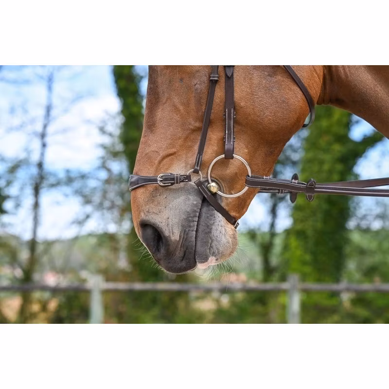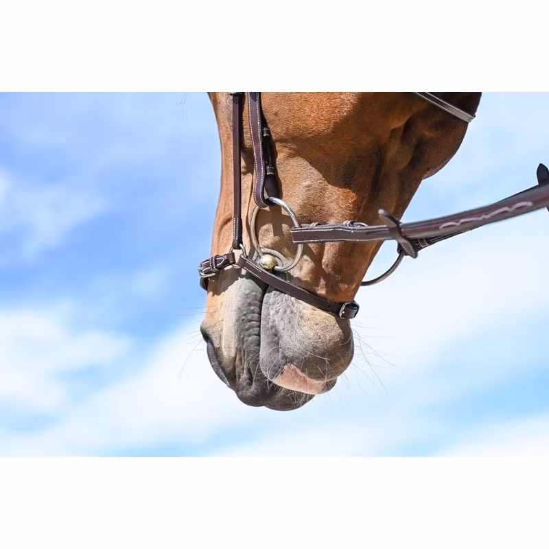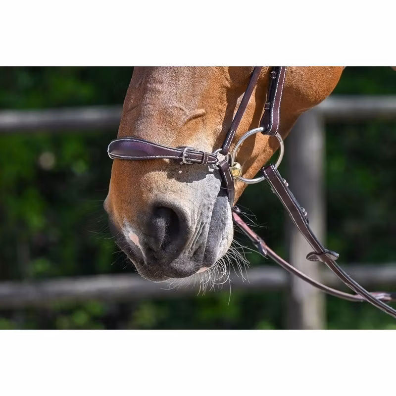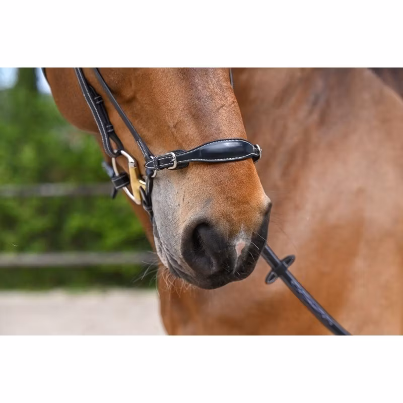 High-quality leather Drop Noseband with two cheek pieces that adapt on every Jump'In bridles. There is a buckle on the lower part (under the chin) to adjust the noseband and there are two small buckles that allow to precisely adjust the noseband tightness. Their actions are complementary. The Drop Noseband is appropriate for horses that tend to open their mouth or that have trouble taking their bit.