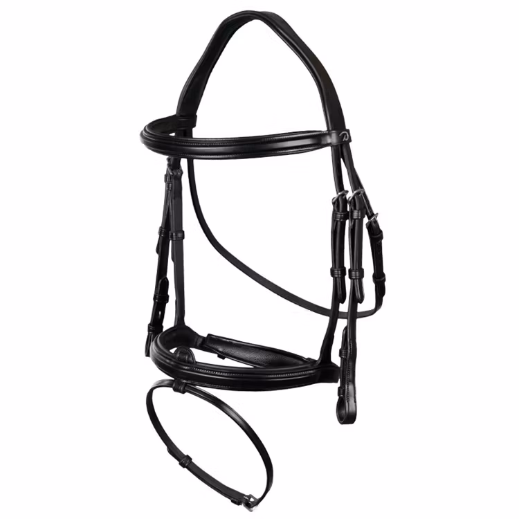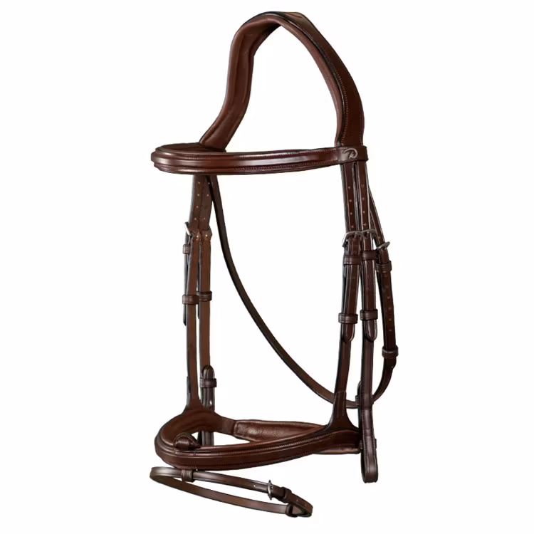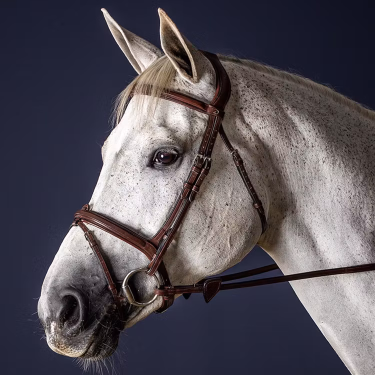 Klassiskt, stilrent träns med silverspännen. Tillverkat i spanskt läder med kombinerad nosgrimma. Nackstycket är S-format för att att få bort trycket från öronen. Pannabandet och nosgrimman är något upphöjt vilket ger en mycket exklusiv look. Den nedre nosremmen är avtagbar vilket ger fler valmöjligheter.