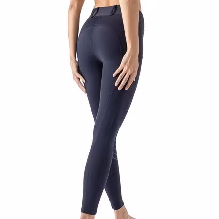 Trendiga ridleggings med knee grip. Bekväma och praktiska med mobilficka på låret.  Hällor för skärp ger intryck av en ribyxa och ger en snygg look. Designade för att vara bekväma hela dagen med god andasfunktion och quick dry funktion. Passar alla typer av discipliner.