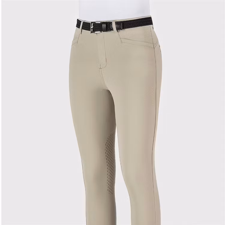Fin flickridbyxa med knee grip i tre klassiska färger. Equiline logga längs med benet i ton-i-ton.