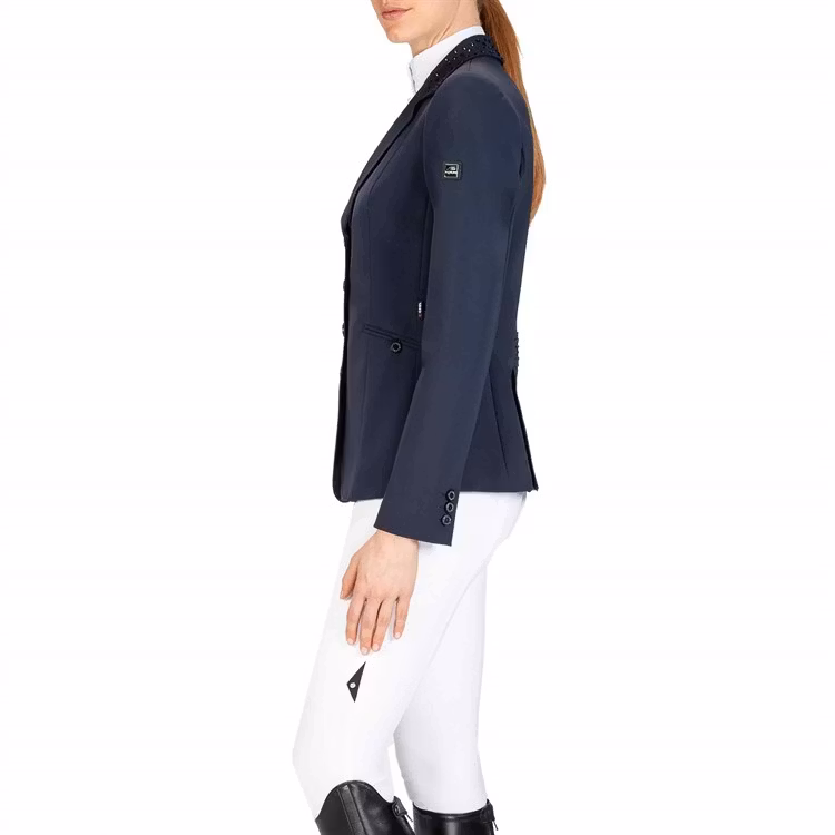 Designad och framtagen för att ge både excellent passform och största möjliga rörelsefrihet. Utsmyckad med små kristaller ton-i-ton både på kragen och i ryggen. Italiensk stil och modern design kombineras i denna kavaj som är handsydd i Italien i det högteknologiska materialet X-cool Evo, ett material som är mycket elastiskt, vatten- och smutsavstötande, andas och går att tvätta i maskin!