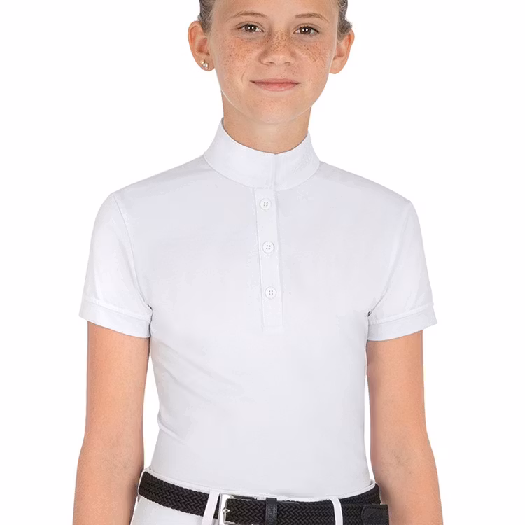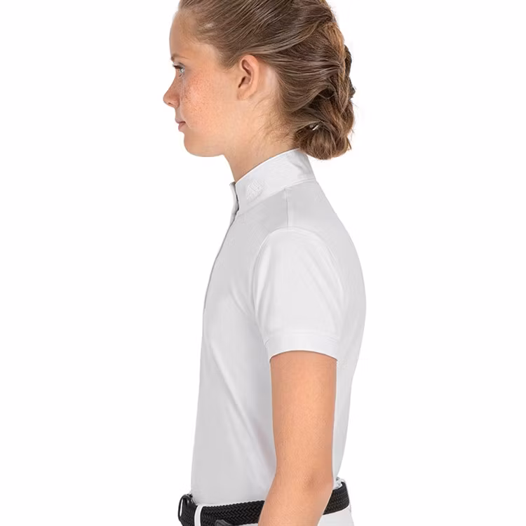 Jupiterk kortärmad damskjorta från EquilineStilren tävlingsskjorta med broderad logga på kragen.Stretchig och andas mycket bra, bekväm att ha på sig hela dagen.