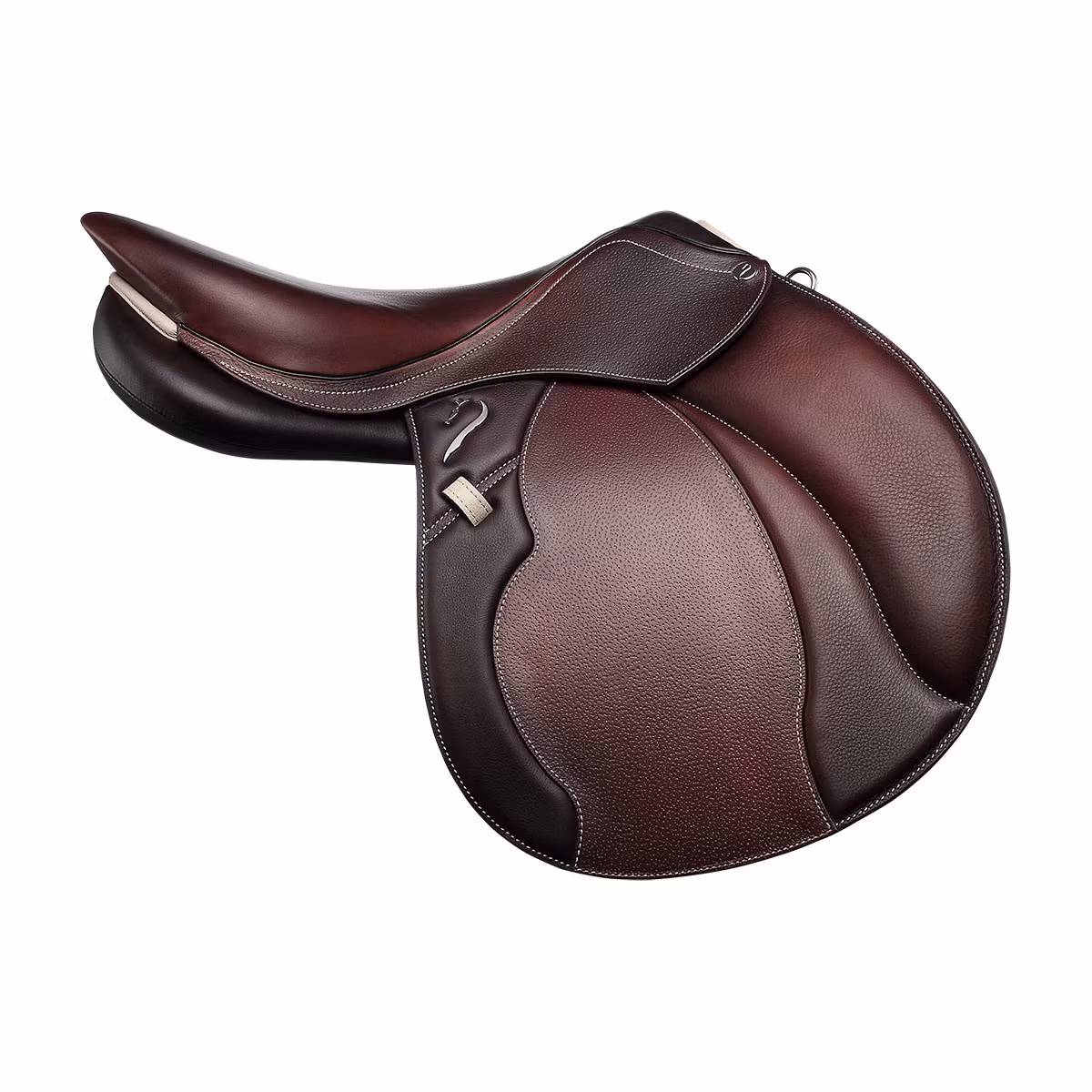 Med sin platta sits och innovativa bom erbjuder denna sadel en ökad närhet till hästen och ger ryttaren möjlighet att smidigt hamna i en position längre fram i sadeln och “på väg till nästa hinder”.