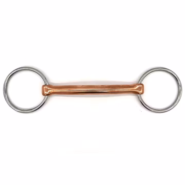 Denna anatomiska design följer formen på hästens mun och applicerar jämnt tryck. Kopparmaterialet uppmuntrar salivutsöndring och är lämpligt för hästar med svår mun.