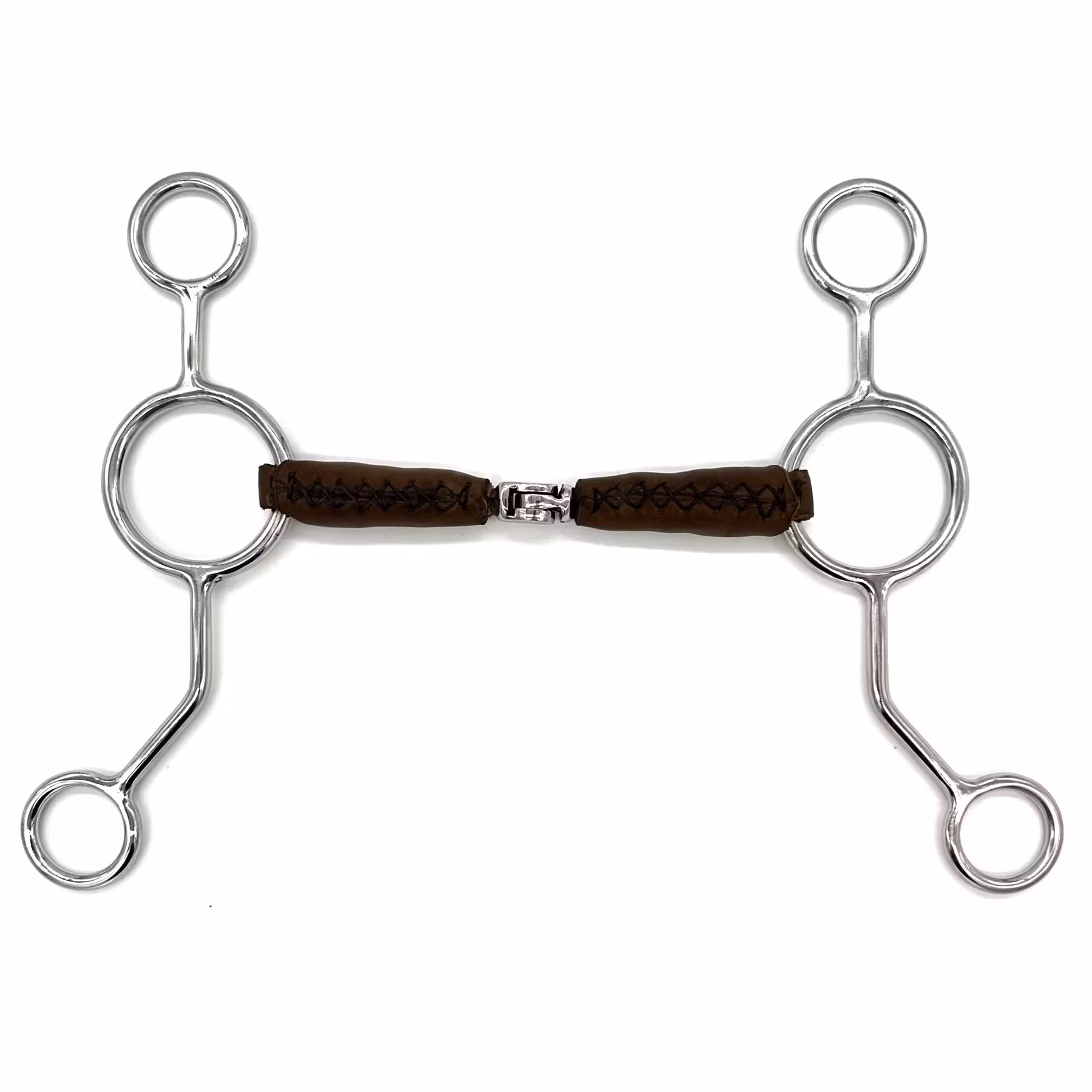 Designad i samarbete med den israeliska olympiska hoppryttaren, Ashlee Bond, det läderklädda gångjärnethissbettet är en i sitt slag. Till skillnad från traditionella ledbett erbjuder den innovativa gångjärnsmekanismen i denna bit förbättrad rörlighet och lyhördhet. Gångjärnet möjliggör oberoende rörelse av de två munstycketsektionerna, vilket ger tydligare och mer exakta signaler till din häst. Jämfört med ett skarvat bits minskar gångjärnet nötknäppareffekten och minimerar risken för att klämma tungan eller kinderna. Detta bett är lämpligt för hästar med låg gom. Det vridna munstycket ger en extra kontrollnivå, vilket gör det till ett utmärkt val för hästar som tenderar att vara starka.