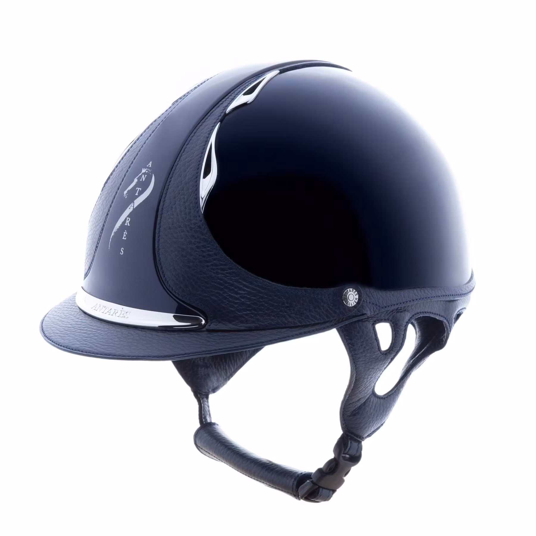 Antarès Premium ridhjälm i en blank blå finish och kromade detaljer kombinerar ett elegant utseende med maximal komfort.