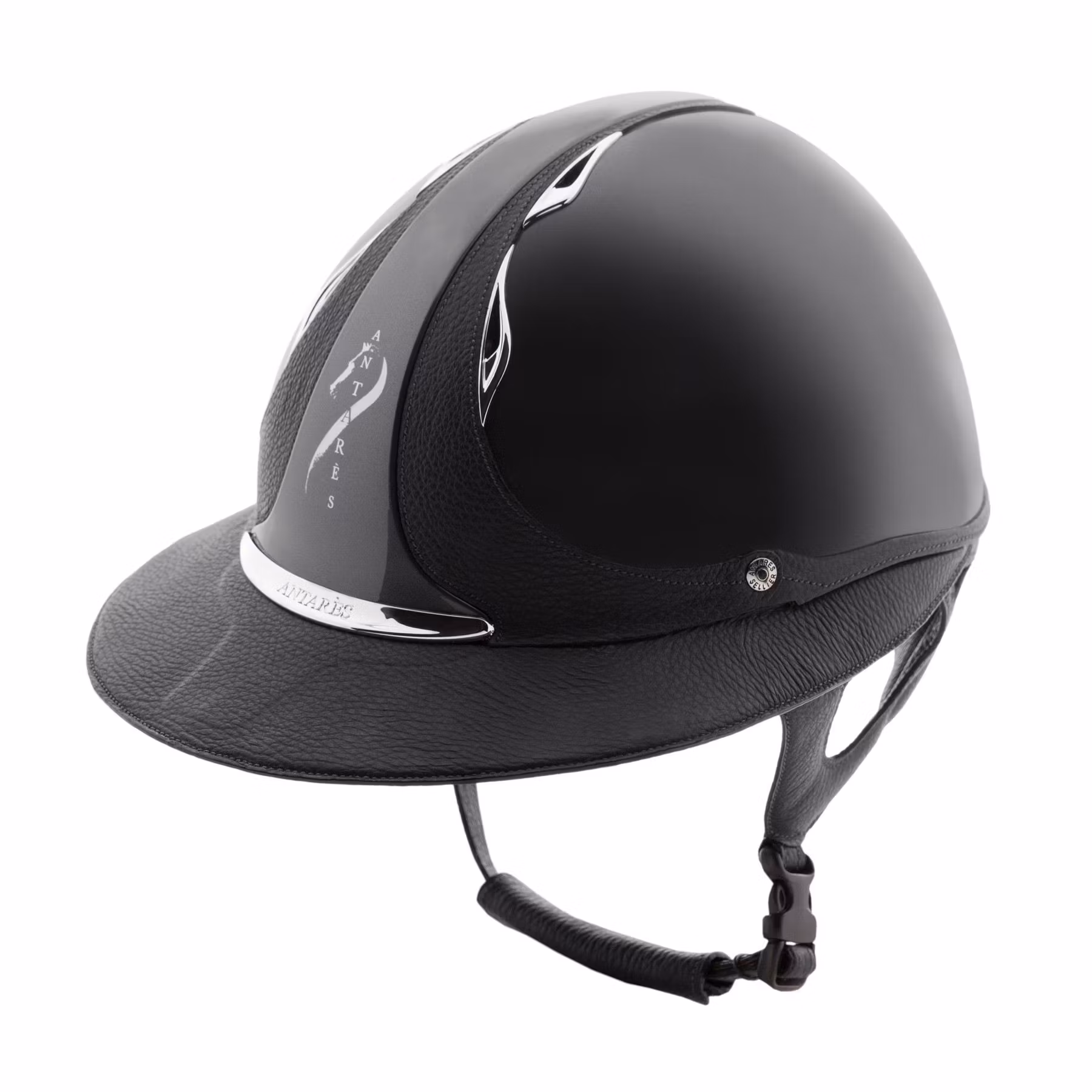 Antarès Premium ridhjälm i en blank grafitgrå finish med mörkgrått läder och kromade detaljer kombinerar ett elegant utseende med maximal komfort.