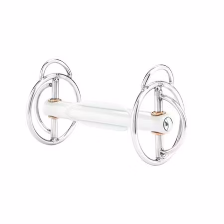 I samarbete med Karl- Friedrich von Holleuffer, körinstruktör och expert på bett utvecklade vi ett bett anpassat för longering. Centralt fixerad mundel och sidodelarna på detta mjuka bett gör det lätt att styra hästen Longerlinan sätts fast i en separat halvring på sidodelen.