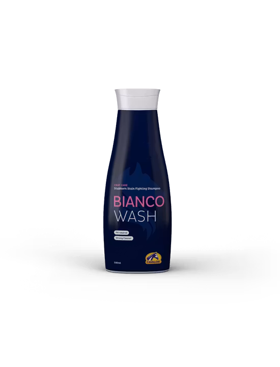 Schampo mot envisa fläckar. pH-neutralt. Starkt rengörande. Med Cavalor Bianco Wash kan vitt verkligen bli vitt igen. Även envisa gräs-, gödsel- eller urinfläckar på vita ben eller andra pälsfärger smälter bort som snö i solen. Dess unika formel tar bort fläckar utan att irritera huden.