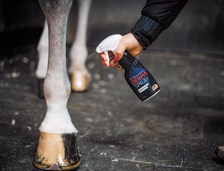 Cavalor Derma Spray används som ett naturligt rengöringsspray på hovar, päls, hud, man och svans. Derma Spray är pH-neutralt och speciellt skapad för huden på hästen där den eliminerar aktiva patogener och även ser till att främja en hälsosam mikroflora. Det sammantaget gör att mängden bakterier och svampar minskar, samtidigt som det hjälper “goda” bakterier att få fäste i det drabbade området. Derma Spray passar också utmärkt till att rengöra sår , vilket i sin tur förebygger infektioner och hjälper kroppens naturliga läkningsprocess.