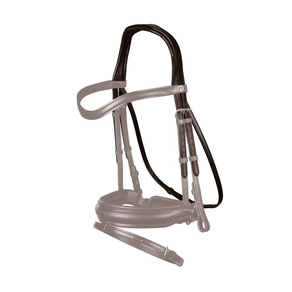 Smidigt S-format huvudstycke – den senaste Dy'on-innovationen för dressyrkollektionen i platt läder. Detta nya S-formade huvudstycke är en förbättring av modell