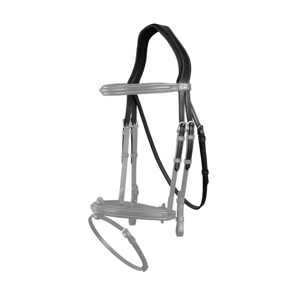 Smidig S-formad huvudstycke – den senaste Dy'on-innovationen för US Collection-tränsen. Detta S-formade huvudstycke är en förbättring jämfört med den modell du brukade känna. Skillnaden? S-formen har framhävts och pannbandet sitter lägre ner på huvudstycket för att inte krama om basen av örat – en av de känsliga fläckarna på din hästs huvud. Att accentuera S-formen gör det också möjligt att se konturerna av basen av örat utan att utöva tryck på den.gar.