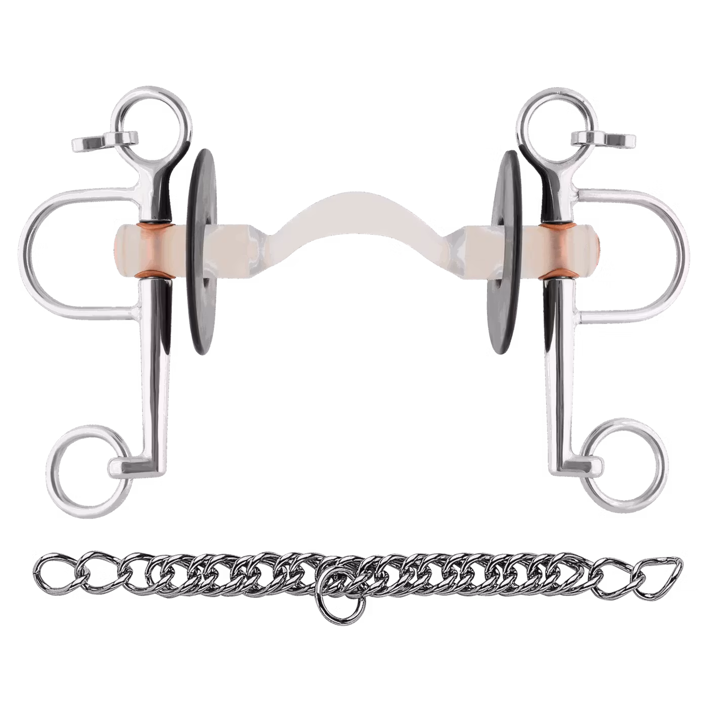 This bit's tongue clearance and short tongues provide maximum comfort. In particular, the sensitive centre of the tongue is relieved. On this model, the bit guards also help to protect the corners of the mouth.