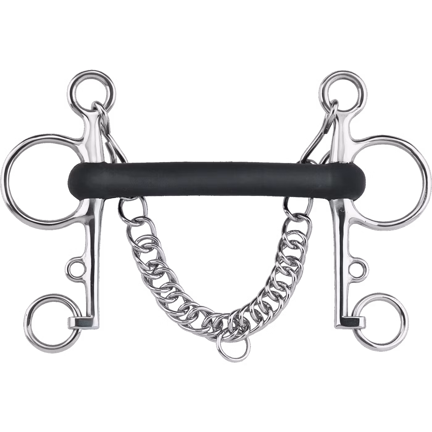 Compared to metal bits, rubber bits are softer and should not get in contact with the teeth of your horse.