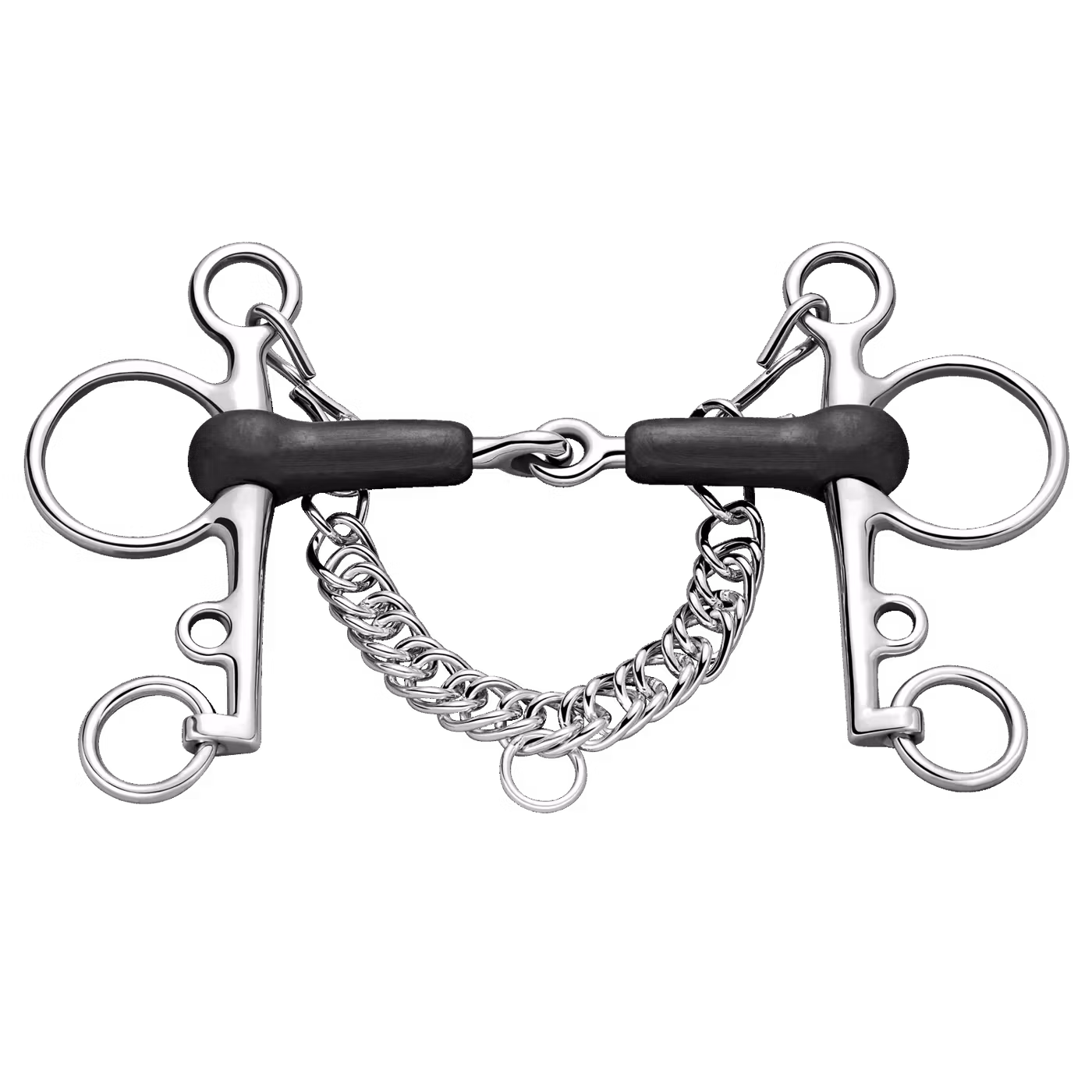 Compared to metal bits, rubber bits are softer and should not get in contact with the teeth of your horse.
