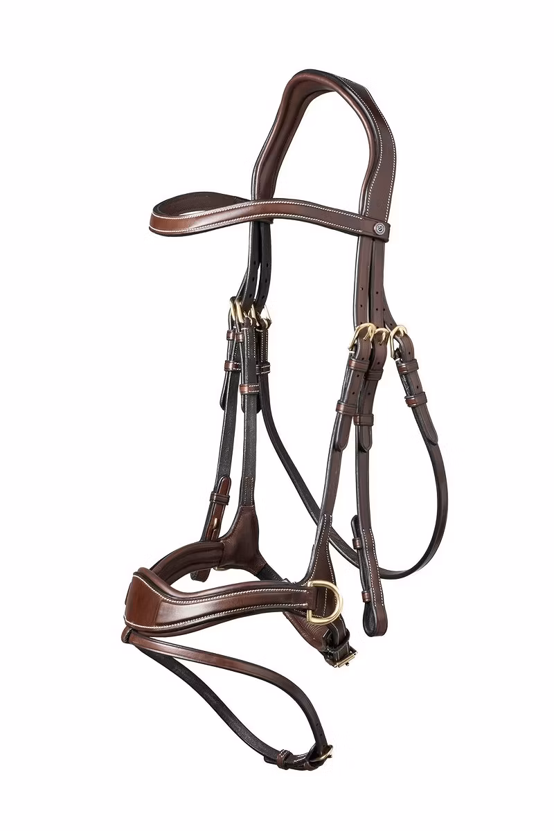 Teamet på TRUST utvecklade TRUST Falsterbo träns med syfte att skapa ett träns som passar alla hästar. Detta träns kan användas på många olika sätt, både med och utan bett. Föredrar du att jobba utan lite? Välj sedan sidodrag eller tvärdrag. Nosgrimman är anatomiskt utformad och fyrkantig upphöjd vilket innebär att den är något upphöjd för att säkerställa att den ligger bekvämt på hästens nos. Huvudstycket är anatomiskt format och avskuret för att ge mer frihet vid öronen. Vadderingen är mjuk men inte för tjock så att direktkontakt med hästen bibehålls. TRUST Falsterbo är tillverkad av europeiskt fullnarvsläder av högsta kvalitet, som är slätt och smidigt och blir ännu bättre med tiden. Tack vare sin överlägsna kvalitet är TRUST Falsterbo byggd för att hålla. Alla aspekter av designen tar hänsyn till den moderna hästens anatomi. Dessa funktioner säkerställer att TRUST Falsterbo erbjuder en perfekt passform. • TRUST Falsterbo har en subtil TRUST-logotyp på huvudstycket och pannbandet. • TRUST Falsterbo är förpackad i två unika handdukar. • TRUST Falsterbo finns i svart och brunt med silverspännen eller brunt med guldspännen. • Alla spännen är nickelpläterade i mässing för att förhindra rost.