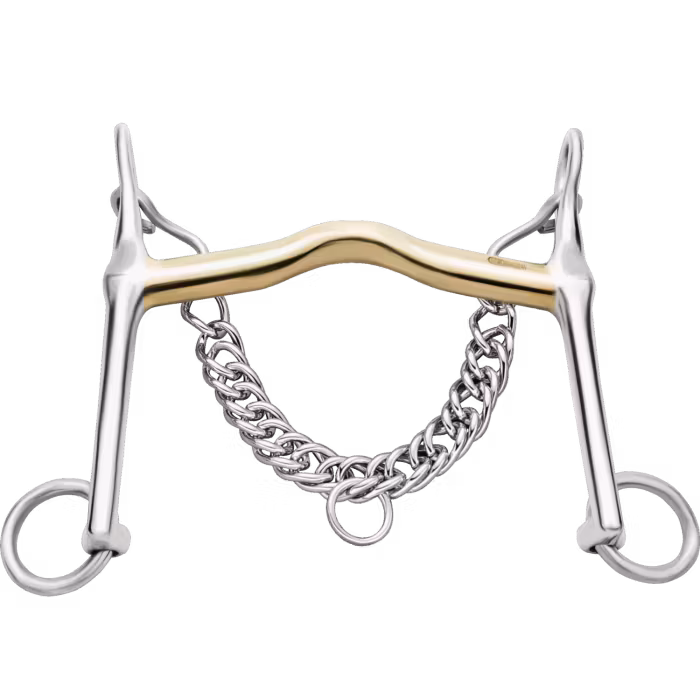 The Weymouth is attached a little bit lower where the horse's head gets thinner. Therefore the Weymouth should be 1/2 to 1 cm smaller than the bradoon. It is important that the cheeks of the Weymouth fit closely to both sides of the horse's mouth.
