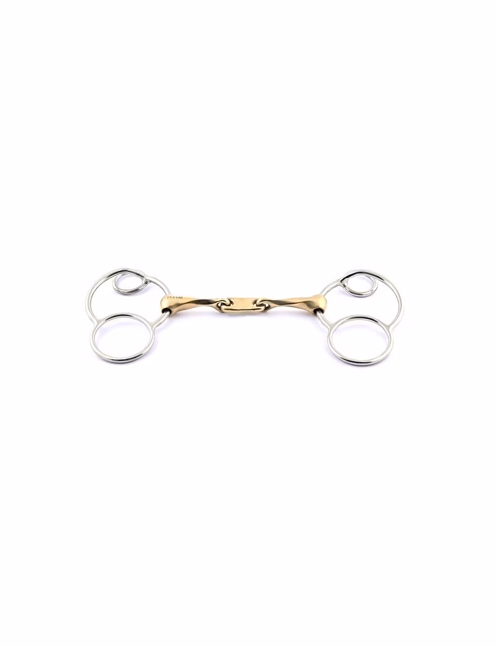 Composition: 3 ring bit with standard 17 mm thick cannons made of German Silver (65% copper, 23% zinc, 12% nickel) a relaxing and solid alloy.