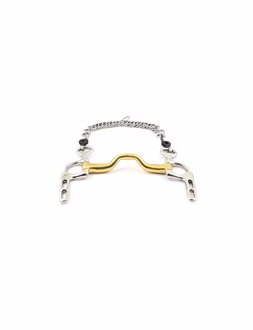 Whether you attach the reins on the top loop or on the lower loop, the action of this bit will be different. The lower the reins are positioned, the more increased the action is. You also have the possibility to adjust or change the curb chain. The cannon makes it easier for the horse to take the bit in a uniform way. Unlike a classic straight bit, this curb bit helps the horse to easily place their tongue. In the end it will impact on the calm and relaxation of the horses during work while maintaining the action needed to keep them functioning.
