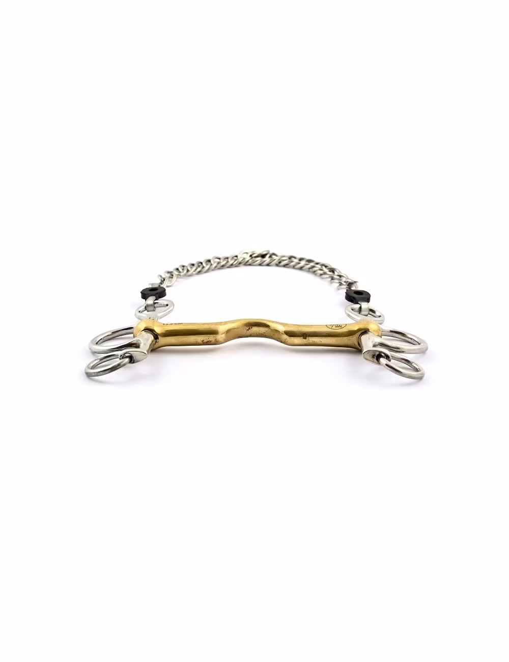 Tips: the curb cannon makes the horse take a better contact on the bit while the rider keeps the maximum of control. Every Pelham bit can be used directly with two reins, with bit loops or with four reins. Therefore, the curb chain action can be softened by using other curb chain types as leather or nylon ones.