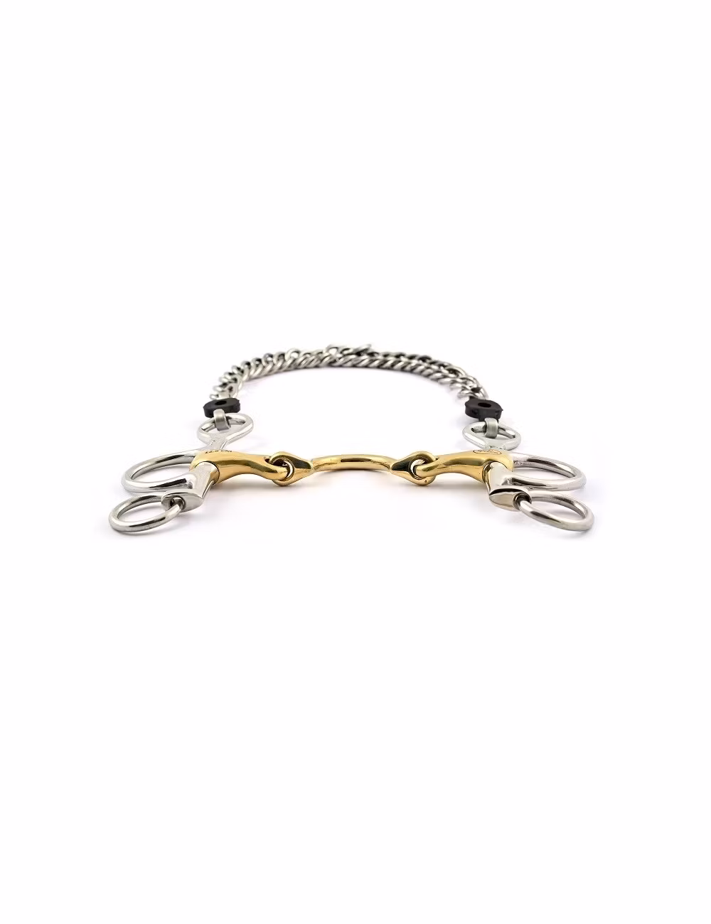 Tips: the high port helps for direction. Horses can easily place their tongue, breathe better and be more focused while working. Every Pelham bit can be used directly with two reins, with bit loops or with four reins. Therefore, the curb chain action can be softened by using other curb chain types as leather or nylon ones.