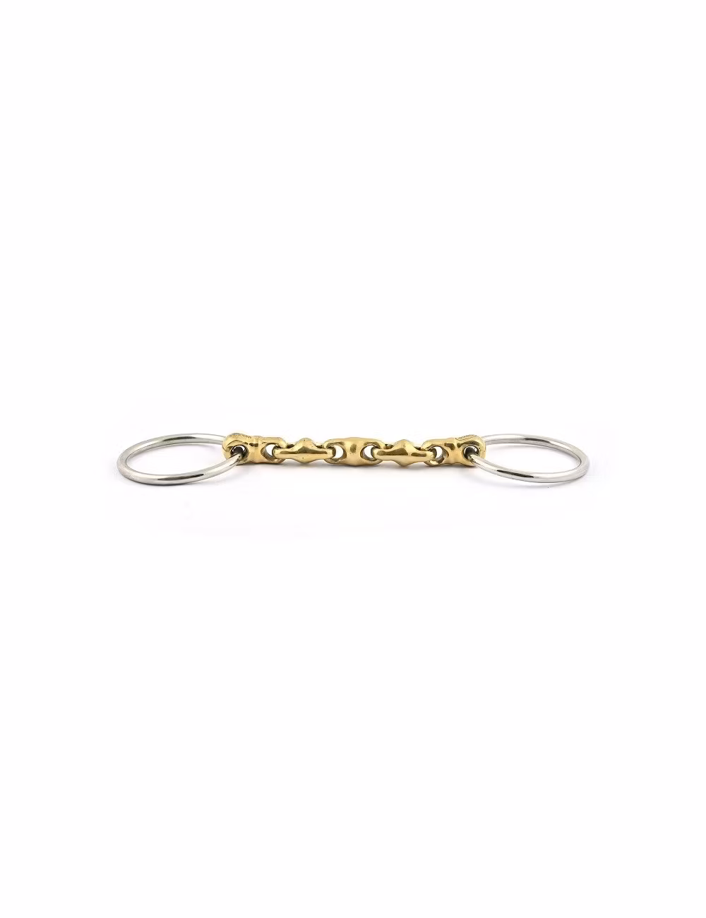 Composition: Bradoon bit with 60 mm rings and 17 mm thick cannons made of German Silver (65% copper, 23% zinc, 12% nickel) a relaxing and solid alloy.