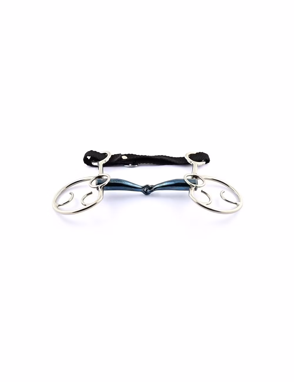 Effect: the Goyo Aga bit has a more or less strong lowering effect depending on where on the ring the rein is fixed and also depending on how the curb chain is tightened. The Blue Steel cannons will adjust to the horse's mouth temperature and favor relaxation.