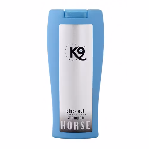 Black Out hästschampo ger en naturligt skinande mörk/svart färg. Neutraliserar missfärgningar och förstärker pälsens naturliga djupa färg, efter några få bad. Ger optimal fuktbalans, frisk och välvårdad päls. Har en lugnande och vårdande effekt på känslig hud. Ekonomisk att använda. Ger lättskötta pälsar, med långvarigt, perfekt resultat – till show och vardag. NOLL KARENSTID! • Färgframhävande!• Drygt!• Glansgivande!Gör så här: Användes som det är eller spädes upp till 1-10. Skölj med varmare vatten på fet päls och svalare på torr. För bästa resultat schamponera 2 ggr och avsluta alltid med K9 COMPETITION HORSE CONDITIONER.Innehåll: Aqua, mg laurylsulfat, cocobetain, certified aloe vera, D-panthenol, wheat protein, parfym, konserveringsmedel, färgpigment. 300 ml